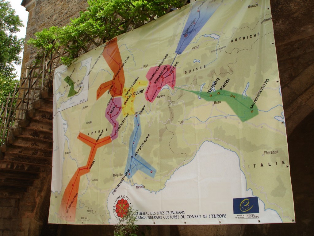 J’ai essayé de dire aussi que Cluny était le fer de lance de la reconquête de l’Espagne et du tracé vers Compostelle. J’ai essayé de faire en sorte que d’autres thèmes d’itinéraires soient donc représentés : saint Martin, l’art roman et saint Jacques de Compostelle. Non pas par une volonté de renforcer les valeurs religieuses de proche en proche, mais pour en faire percevoir l’universalité.