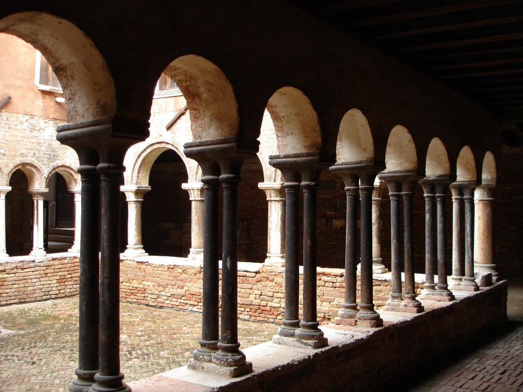 J’écoutais les explications d’un Français un peu pédant – tous les Français ne sont-ils pas pédants ? – qui expliquait les bases de cette technique dans le cloître où sont exposés des le lapidaire de la basilique saint Marc. Cette pédanterie a du moins l’avantage de m’éclairer sur la présence de ces bouchons percés, en saillie, qui sont répartis aux quatre coins de la partie centrale du cloître et sur le rôle du puit, rencontré selon le même modèle des centaines de fois dans les cours des îlots. Eau de pluie accumulée, filtrées par le sable et créant une sorte de nappe phréatique artificielle d’eau douce. L’inventivité au service de la survie.