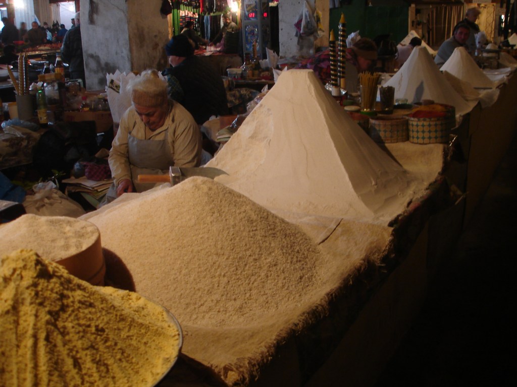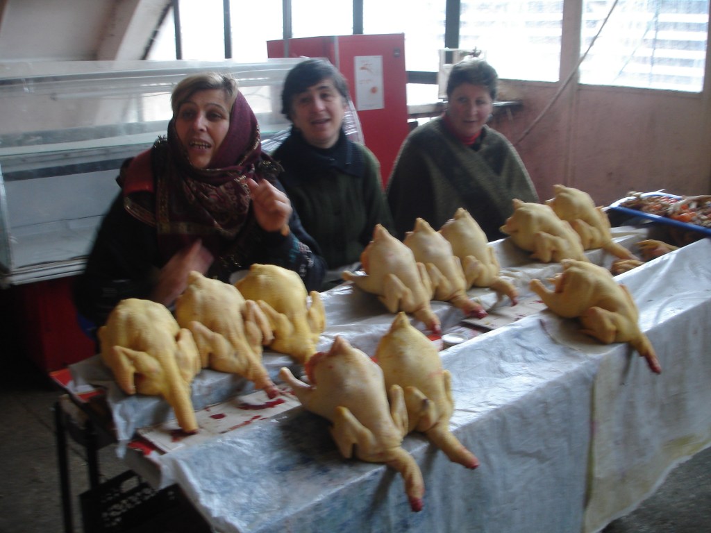 Et les marchés alors ? Je vous laisse découvrir avec quelques photographies l’offre grandiose, encore paysanne. Une offre faite de tas de légumes, de monticules de farines de blé ou de maïs, de bassines débordantes de cerneaux de noix, de régiments de cornichons, de colonnes de fromages fumés ou non, de colonies de poulets et de sourires patients et un peu moqueurs pour les touristes que nous sommes.