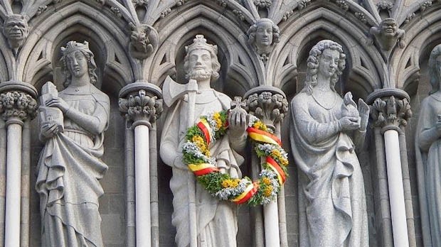 Long Festival d’été dédié à Saint Olav qui rassemble un pays dans son entièreté, des princes régnants aux politiciens à la retraite, de la dynamique ministre de la culture, aux pasteur(e)s, évêques et curés, dont les costumes s’échangent et les discours se complètent. Un(e) évêque en mitre marchant parmi ses collègues, donne le sentiment que c’est le monde qui marche sur la tête. De fait, il marche ici plutôt à l’endroit et l’égalité entre les religions et les sexes est gérée dans l’impression d’une douceur acceptée ! Sentiment d’étranger, de passage ? Je crois au contraire que la coexistence et le dialogue sont vraiment profonds.
