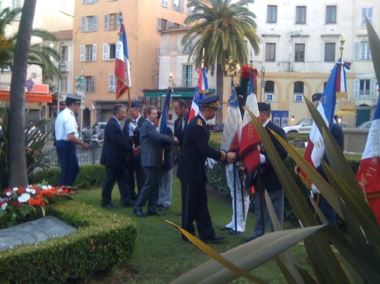 Puis, une fois le long discours historique sur l’origine de la distinction menée à son terme, est venu le temps de ranimer la flamme, aux pieds d’un empereur à la romaine. Rien moins qu’un préfet, un général et un maire ont porté ensemble cette tâche symbolique et récurrente. Il n’y avait pas foule en ce début de soirée où la chaleur cédait le pas aux cris des oiseaux. Mais pourtant la succession des gestes, tous voulus solennels, augurait l’idée d’un temps qui passe, intact et intangible, dans la mémoire célébrée du compatriote, de l’apprenti militaire, du général conquérant, de l’Empereur adulé et de l’exilé.
