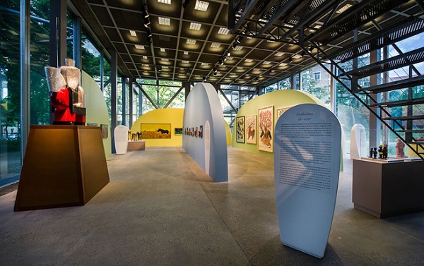 A sa manière et sans doute de manière assez paradoxale, cette exposition qui restera en raison de son statut prestigieux confinée aux publics dits cultivés, s’adresse pourtant autant aux populations migrantes qu’aux amateurs des arts dits « primitifs et à ceux que l’on dit « contemporains ». Ce qui n’est pas le cas, de la seconde exposition avec laquelle je veux faire un rapprochement : « Histoire de voir – Show and Tell » qui est à la fois plus calme et plus stimulante et en un mot qui la résume : plus littérale. Calme dans le sens où l’on a affaire à des producteurs d’artefacts, utilisant des supports variés et dont les œuvres souvent tridimensionnelles que l’on peut nommer parfois sculptures abstraites, sont le plus souvent conçues comme des objets de production courante : poteries, jouets, bijoux et peintures au sens propre…dont une des destinations pourrait être le cadeau souvenir pour les touristes. Artistes, artisans ? J’ai l’impression de revenir à un débat ancien.