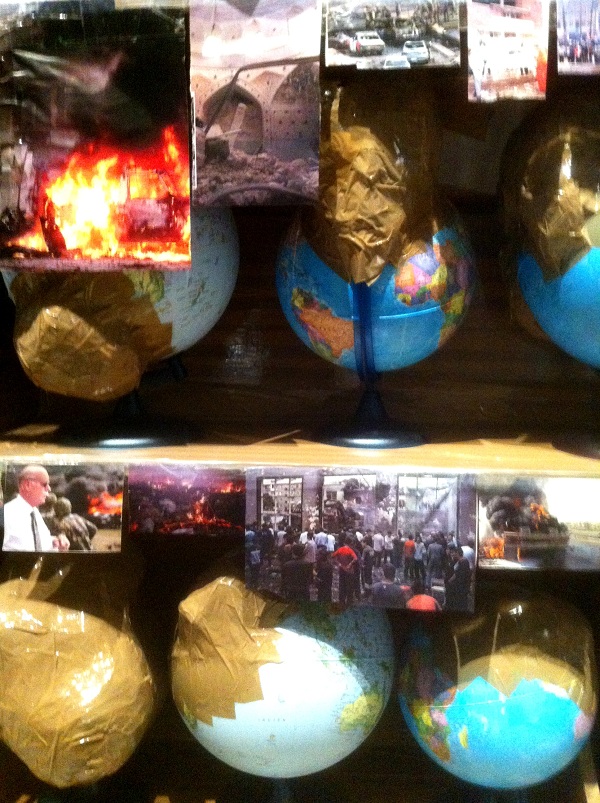 Autrement dit ? « Dès l’entrée, « Outgrowth », une œuvre de Thomas Hirschhorn, donne, avec ces globes terrestres tuméfiés, un aperçu des désordres du monde. » Il s’agit sans aucun doute d’une clef opérative : la mondialisation déforme la terre, en hypertrophie certains espaces aux dépens d’autres qui sont épuisés et au vrai sens du terme, brûlés ou consommés. Il existe cependant des îlots de résistance, là où des hommes encore proches des origines de leurs sociétés respectives traversent la paroi du mystère et vont régulièrement chercher des remèdes pour assurer la survie de fragments d’humanité qui constituent, par leur totalité, une humanité toute entière. Pour ne pas dire qu’elles constituent peut-être des zones de survie de l’espèce, au cas où l’humanité s’emballerait définitivement et s’autodétruirait.