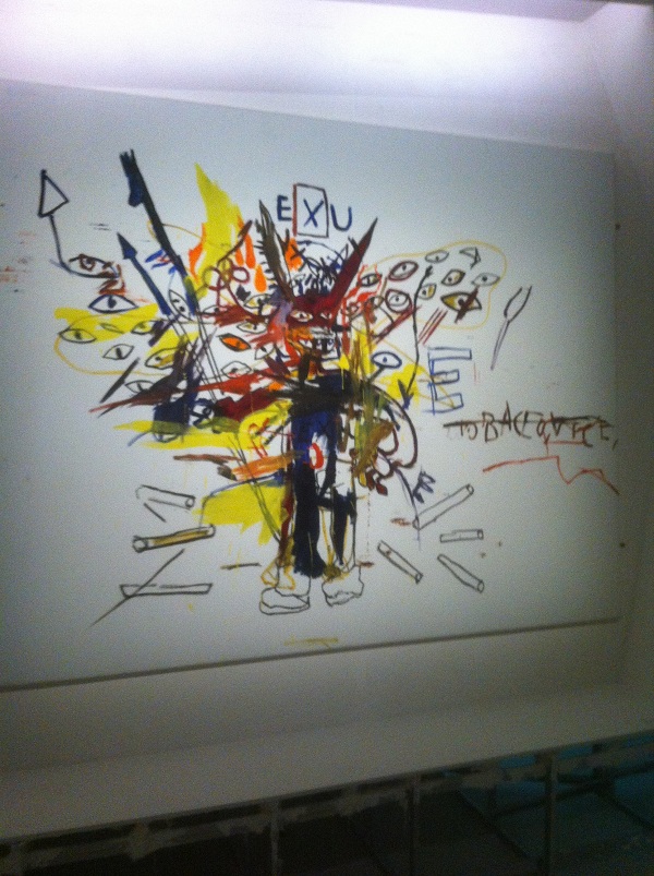 En un sens, il est vrai que certains artistes prétendent jouer ce rôle dans l’espace marchand des sociétés dites civilisées. C’est d’ailleurs la présence de leurs œuvres dans ce contexte ethnographique qui pose une question vraiment intéressante, car pour le reste, le choix des objets au sein de diverses collections, dont celles du musée, est tout à fait passionnant. Ce rapprochement constitue une question qui n’est pas posée pour la première fois. C’est même une habitude récurrente depuis que des commissaires d’exposition d’art contemporain, ont convoqué dans les années soixante-dix le cérémoniel et les objets transitionnels dans les enceintes dont ils sont responsables. Je garde le souvenir marquant des œuvres de Rebecca Horn et de l’utilisation extensive qu’elle fait des plumes d’autruche, des bandages, ou encore des prothèses, comme dans « The Feathered Prison Fan », un travail intégrant des objets dans une performance, présenté en 1979 par Erika Billeter dans l’exposition « Weich und plastisch: Soft Art », exposition qui a beaucoup influencé le regard que j’ai ensuite porté sur l’art souple et l’art textile. Le souvenir de Josef Beuys qui figure maintenant à titre documentaire pour ce qui concerne ses installations des années soixante-dix mais surtout pour ses actions en galerie ou dans les musées, systèmes complexes engageant son propre corps et qui ont été fondées sur le fait d’avoir été lui-même sauvé par un chaman grâce à la graisse et au feutre dont on l’a entouré, peut témoigner pro domo des possibilités et des espaces de passage d’un monde à l’autre. Jean-Michel Basquiat, également présent par une œuvre à la limite du graffiti, constitue en quelque sorte l’extrême limite récente et fulgurante du choc des mythes entre le monde noir du dieu Exù et les paillettes de l’urbanité américaine des mondes d’Andy Warhol et de Madonna.
