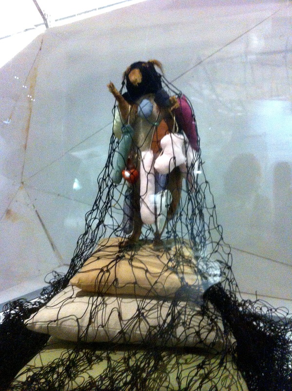Voilà en effet un propos à la fois modeste et empathique qui ne néglige pas pour autant le fait que les travaux exposés sont eux aussi de l’ordre du sacré ou de la magie et en tout cas du panthéisme. Mendini parle encore d’une atmosphère de délicatesse animiste, abstraite et conceptuelle. Je retiens en premier le terme animiste parce que dans cette présentation et dans ce choix, l’âme est partout présente et les forces de la nature affleurent toujours aux abords de ces objets qui ont tenté d’en apprivoiser les débordements et les menaces potentielles. Représenter et raconter pour se rassurer, au sein de communautés qui sont souvent aussi menacées que les forêts où elles vivent et les environnements qui les ont vus naître, ou au contraire écrasées par la pression de cités surpeuplées, tel est un point commun. Artistes donc, dans la mesure où ils se sentent parfaitement intégrés dans un processus d’expression de leurs milieux. Artisans poussés à aller chercher leur survie dans les devises des visiteurs venus de loin. Artistes poussés en quelque sorte en permanence à regarder, prélever, couper, accumuler, bricoler, tailler, cuire, coudre, tricoter, marcher, commercer, échanger et dire. Artistes dont les noms ne diront rien à la plupart des visiteurs qui auront aussi pourtant la possibilité de les écouter dans une série de films et de rencontres inscrites sous le terme de « nuits de l’incertitude » animés par Stéphane Paoli et de « soirées nomades » qui croisent toutes les disciplines artistiques autour de ce thème.